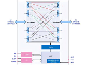 MEMS optical cross-connect switch is an MxN switch matrix that allows the simultaneous connection of multiple inputs to output fibers in a fully non-blocking, all-optical, cross-connect configuration.